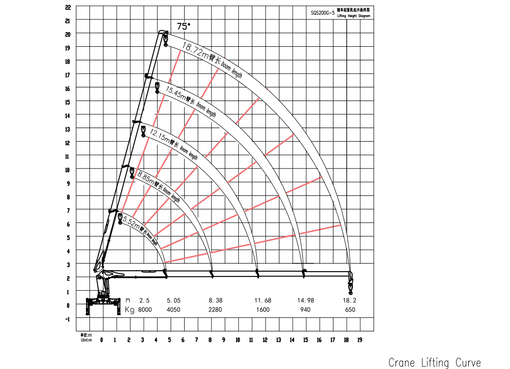 The SQS200G-5 offers a maximum lifting capacity of 8,000kg and a lifting moment of 16.7 t.m, making it suitable for heavier materials, machinery, and structural components compared to entry-level telescopic cranes. It delivers strong lifting power while maintaining precise control.