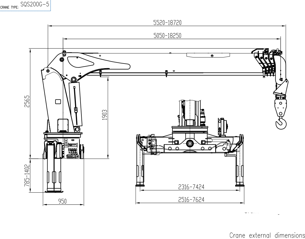 Despite its increased capacity, the SQS200G-5 requires only 1,200mm installation space and has a crane weight of 4,250kg. This makes it suitable for medium-duty truck chassis while maintaining good maneuverability on roads and job sites.